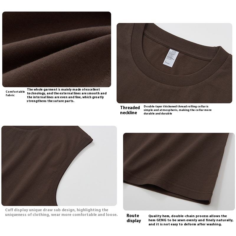 Hot 250g Pure Cotton Summer Vest Casual Knitted Tank Sleeve Heavy Cool Breathable Combed Cotton Simple Draped Sleeveless T-Shirt