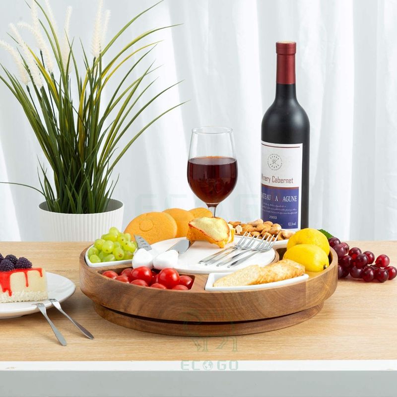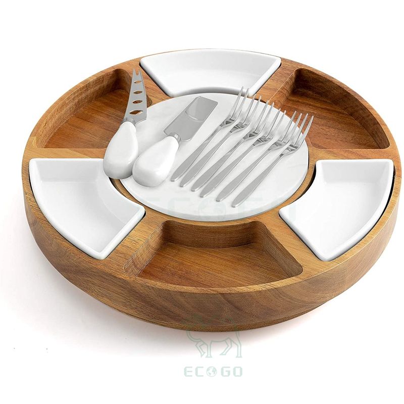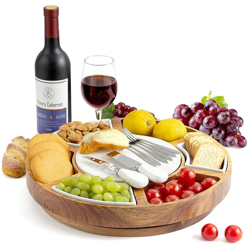 Hot Acacia Wood Cheese Board,Marble Cutting Board,Cheese Knife Set Accessories Tray Slides