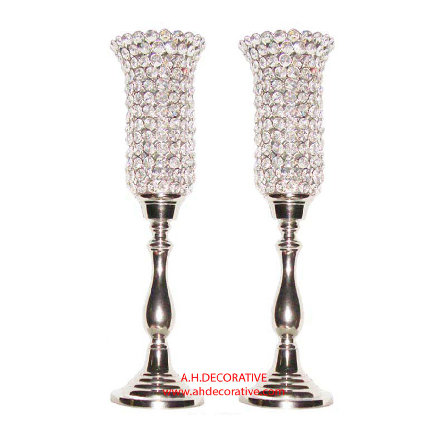 Hot Aluminum Tall Nickel Plated T Light Handmade Candle Holder Pillar on Tripod Base Embossed Design Shiny T Light Candle Holder