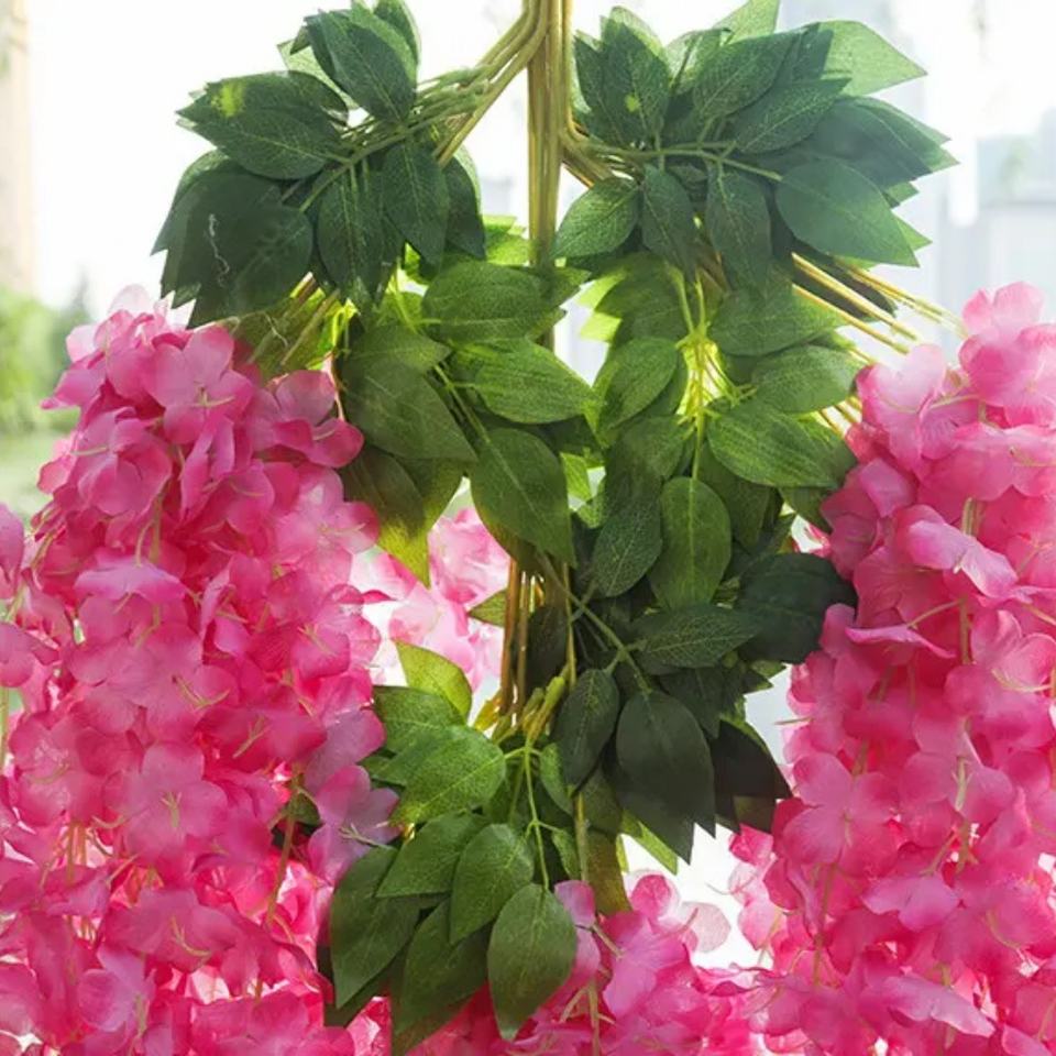 Hot Artificial Wisteria Vine Pink Branches Wisteria Hanging Flowers for Wedding Party Event Ceiling Decor