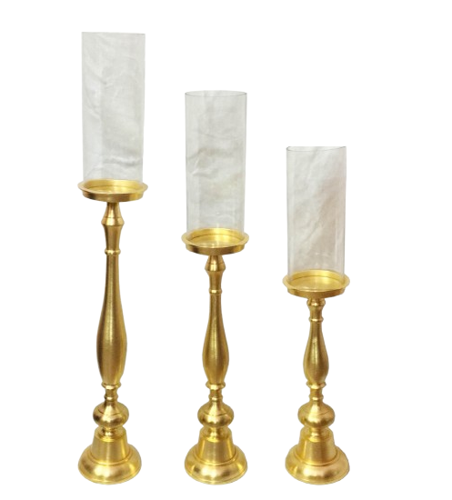 Item Name:Gold Pillar Candlestick With Glass Pillar