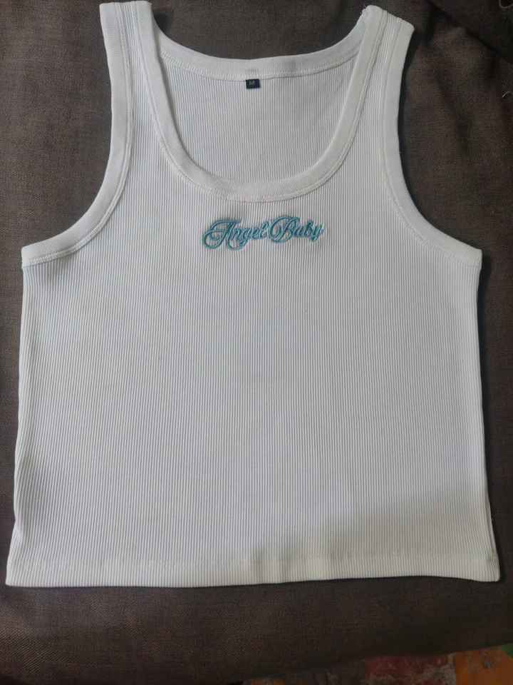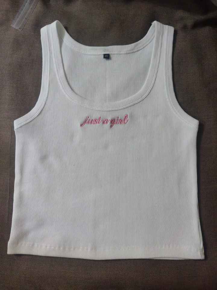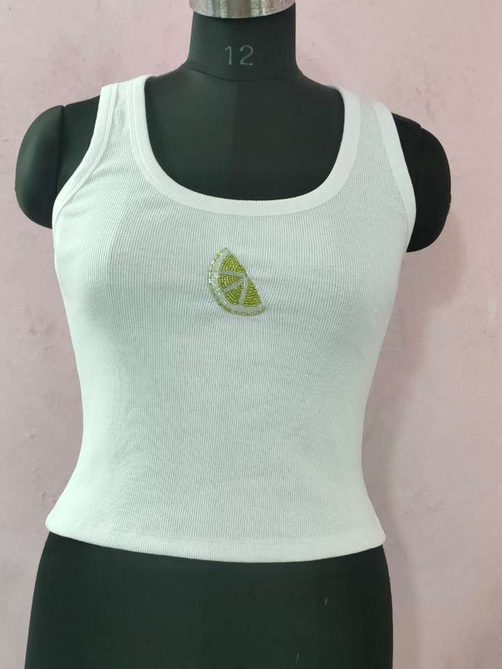 Hot Beaded Embroidery Ribbed Cotton Tank Top For Women Sleeveless Summer Vest Scoop Neck Handcrafted Casual Apparel Tee