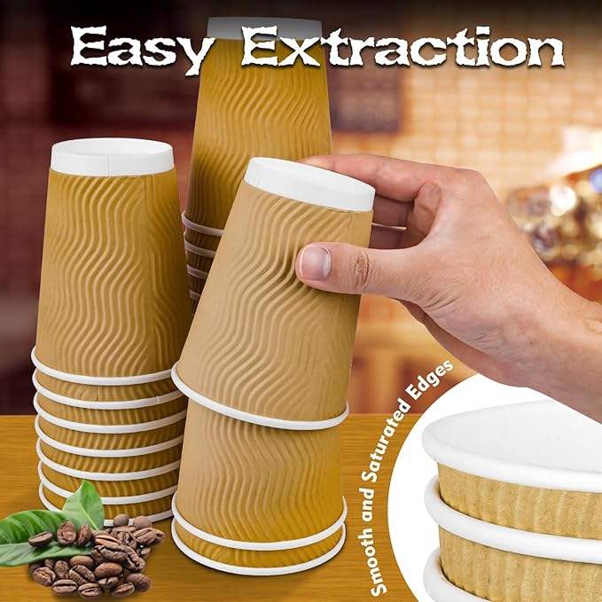 Hot Biodegradable Eco-Friendly 12 oz Insulated Disposable Corrugated Ripple Wall Coffee Beverage Cups