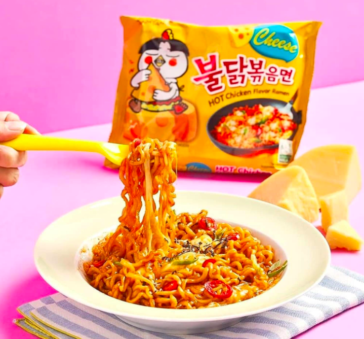 Hot Chicken Flavour Buldak Noodles Buckwheat Cheese Halal Bulk Pack 140g