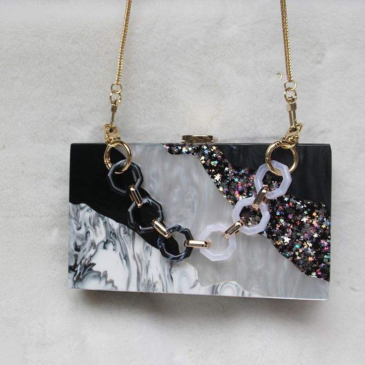 Aaliyan Impex Ladies Luxury Clutch Bag Hot Crafted Resin Long Style Handbag with Zipper Closure and Acrylic Lining