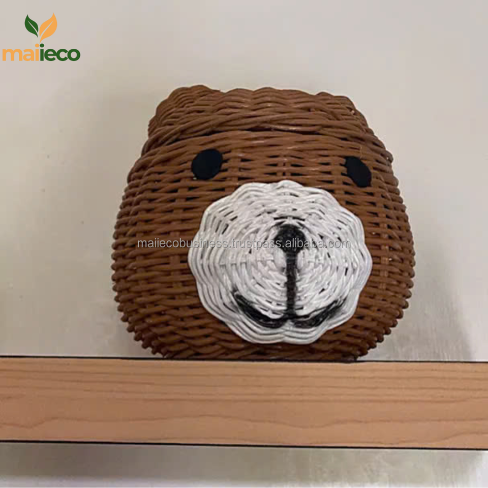 Hot Creative Vintage Style Bear Storage Basket Natural Rattan with Circle Ear Shaped Lid for Kids Toys Easter Basket