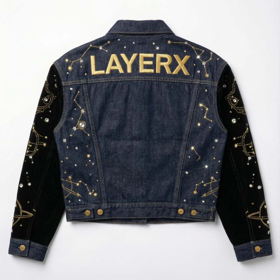 Hot Custom Y2K Women Short Finished Heavyweight Denim Rhinestone Embroidery Vintage Wash Distressed Mixed Fabric Collar Boxy Fit