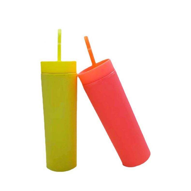 Hot Customized Matte Acrylic Tumblers 16Oz Double Wall Skinny Tumblers Plastic Tumblers Cups in Bulk With Straw