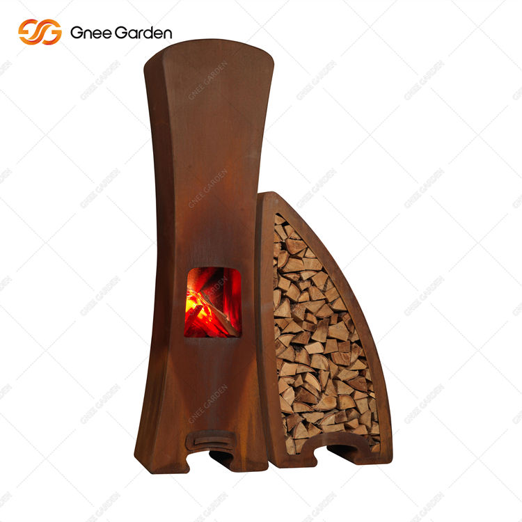 Hot Deal Corten Steel Concrete Outdoor Fireplace Wood-Burning Fire Pit Firewood Storage Eco-Friendly Freestanding for Backyard