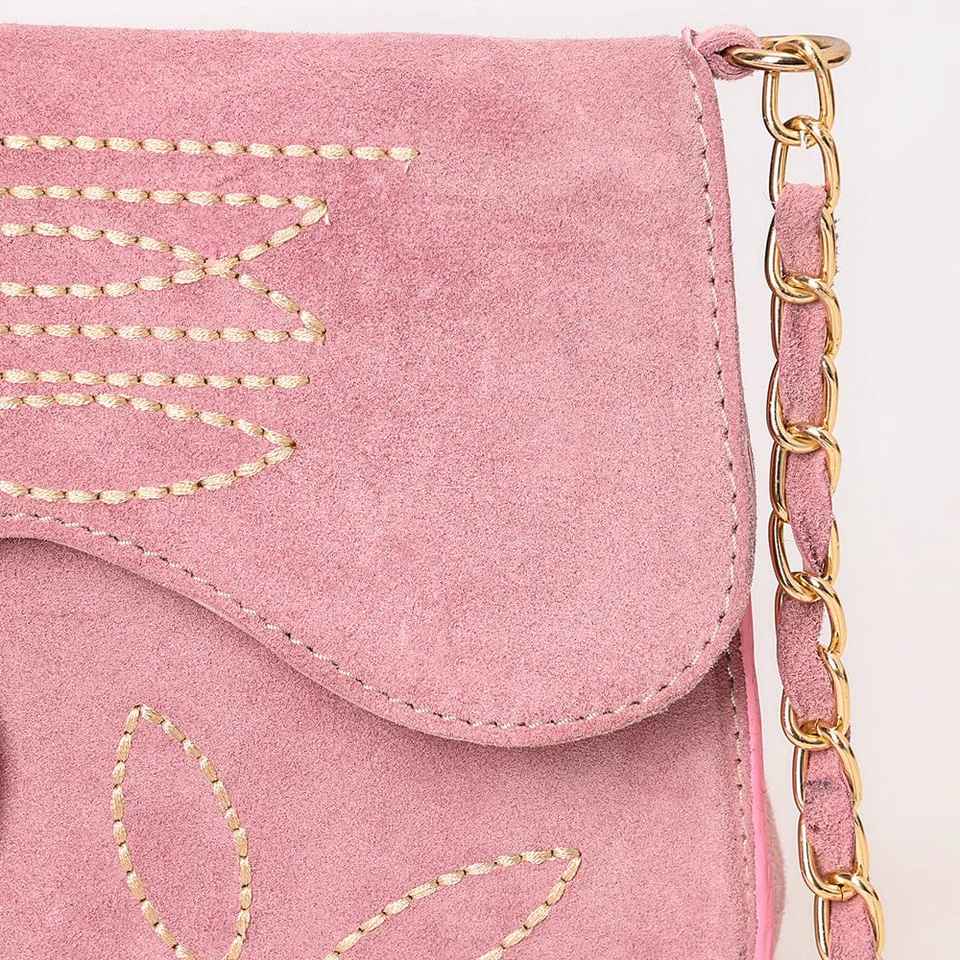 Hot Deal Customizable Suede Leather Cowhide Cowgirl Purse for Women Western Boot Stitched Design with Tassel Flower Decorations