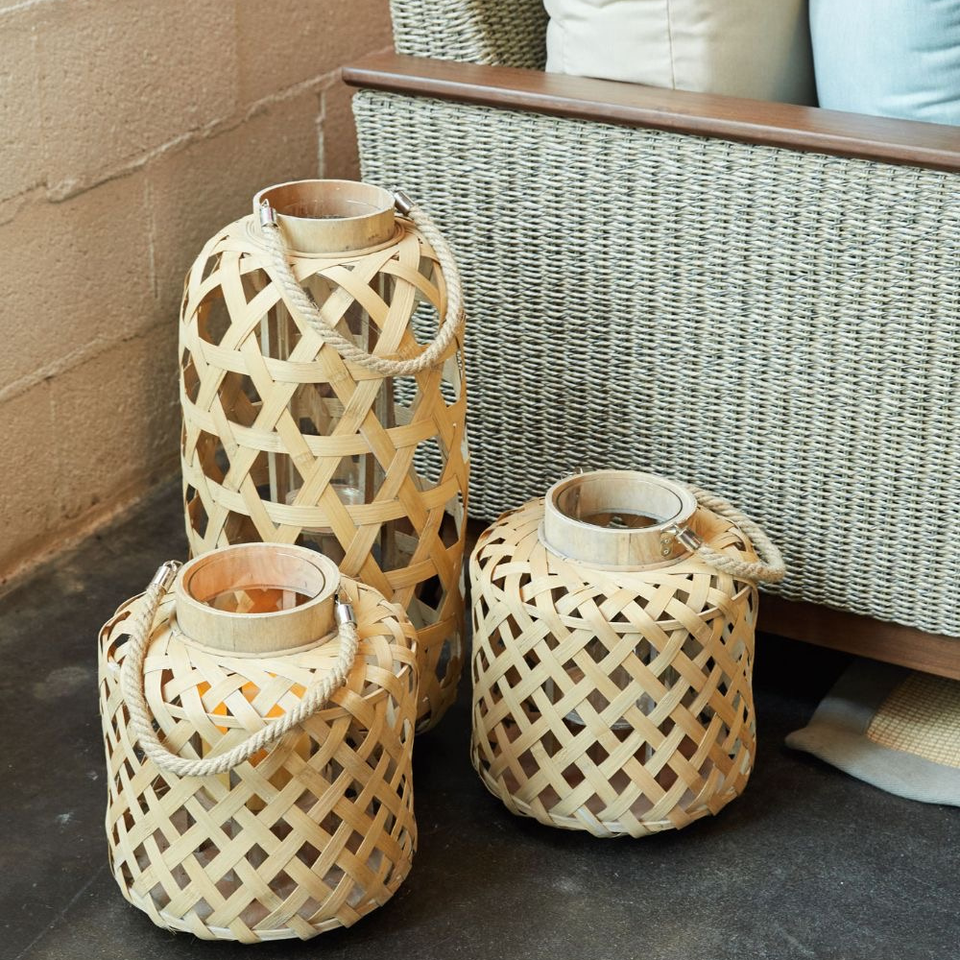 Hot Deals Customizable Bamboo Rattan Candle Lantern Handmade Boho Style Natural Decor Warm Lighting