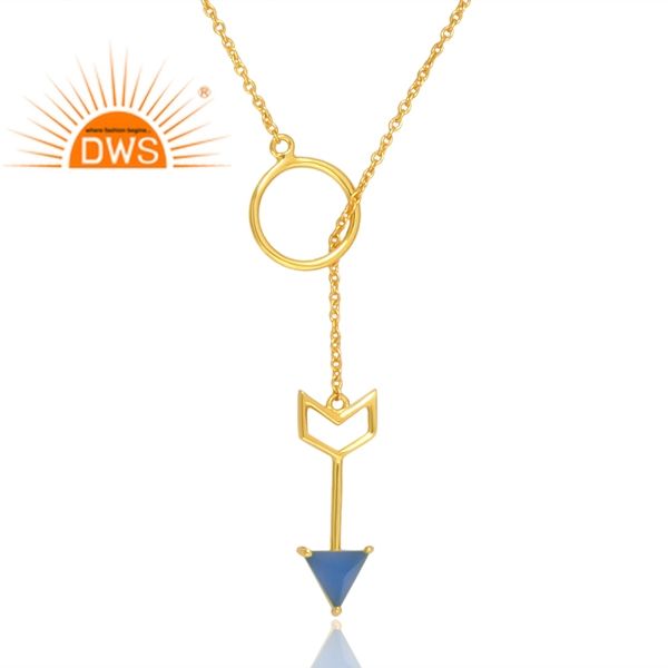Hot Design 925 Sterling Silver Gold Plated Blue Chalcedony Gemstone Pendant Necklace Demi Fine Jewelry For Women Gift For Her
