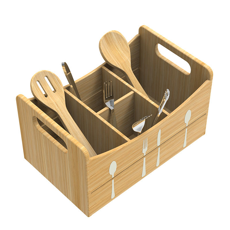 Hot Design Paulownia Light Carbonized Compartments Modern Durable Space-Saving Kitchen Counter Organizer Stash Box