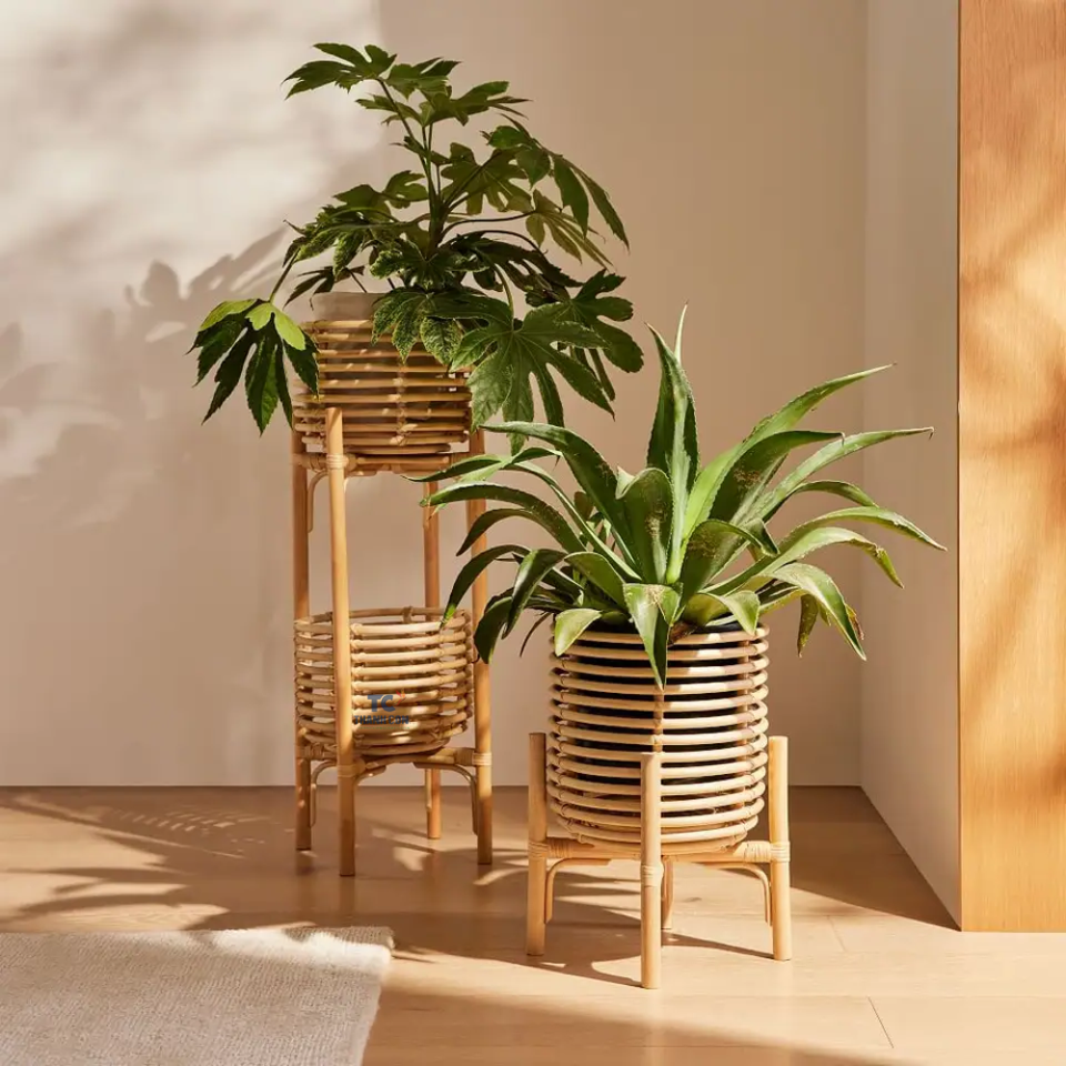 Hot Design Rattan Plant Pot Woven Rattan Plant Stand Wicker Boho Flower Pot Indoor and Outdoor Decor Rustic