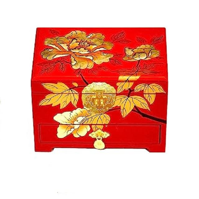 Hot Designed Wood With Floral Design Outside Jewelry Box Makeup Kit Storage Box Girls Women Home Necklace Ear Ring Keepsake Box