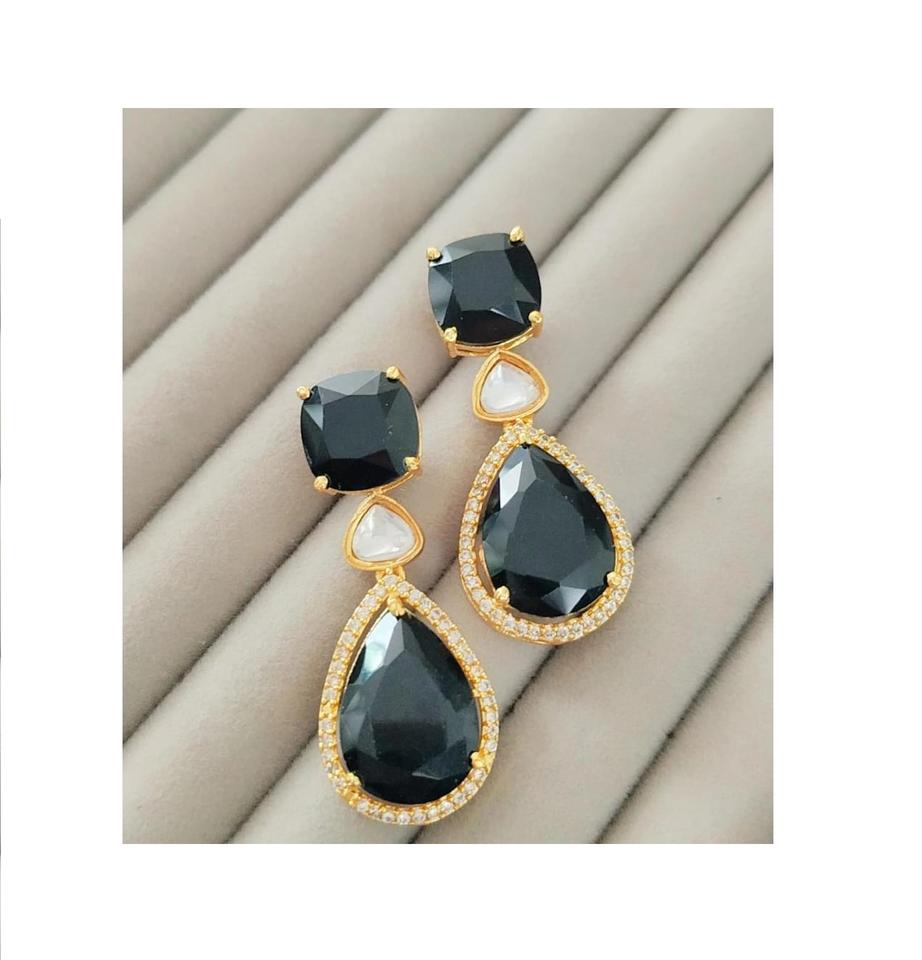 Hot Earrings With Black Onyx Mulit Shape Gemstones With 925 Sterling Silver 18K Gold Plated for Women
