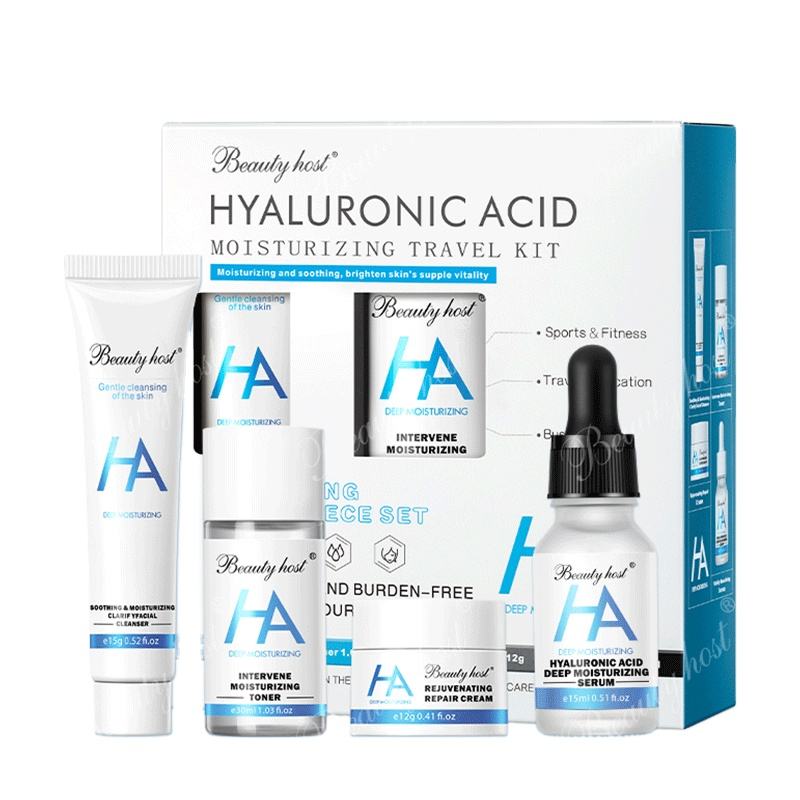 Hot Face Skin Care Moisturizing Hydrating Hyaluronic Acid Travel Kit 4PCS Skin Care Set Cleanser Serum Tonner Repair Cream