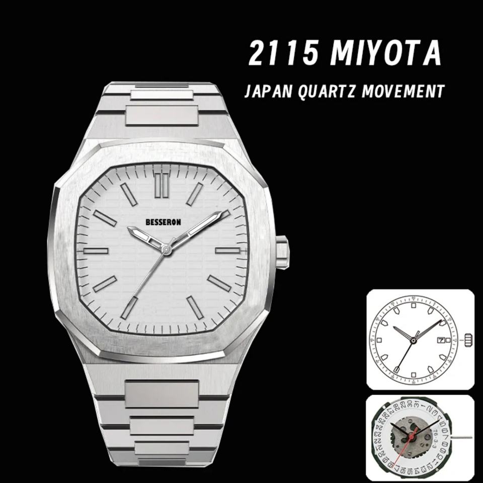 Hot Fashion Business Calendar Analog Stainless Steel Quartz Men's Watch Waterproof Luxury Custom Logo Ultra-thin Japan 44mm