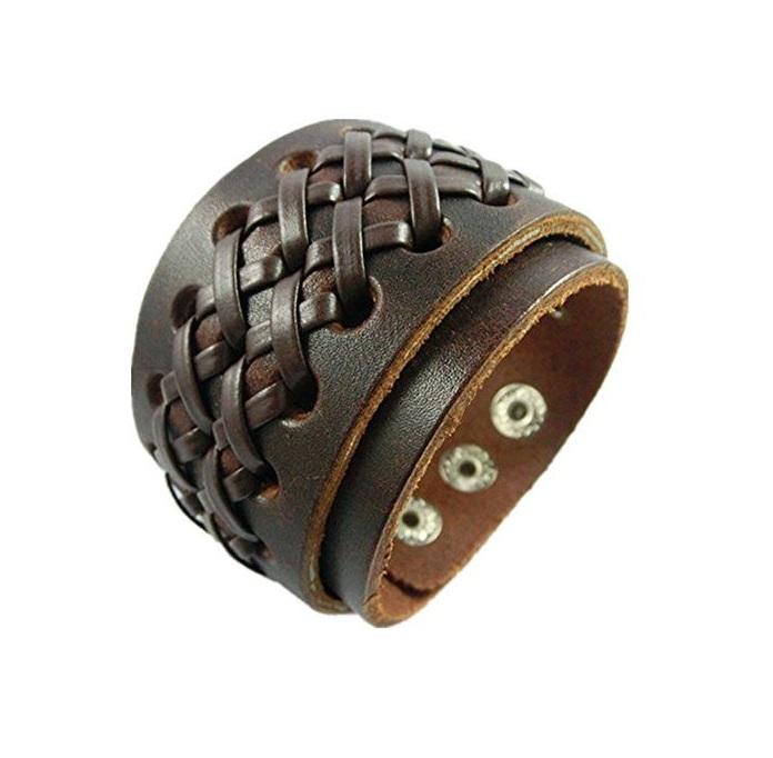 Hot Fashion Men's Multilayer Vintage Leather Bracelet Five Circle Embossed Brown Charm Braided Rope Long Leather Wrap Bracelets