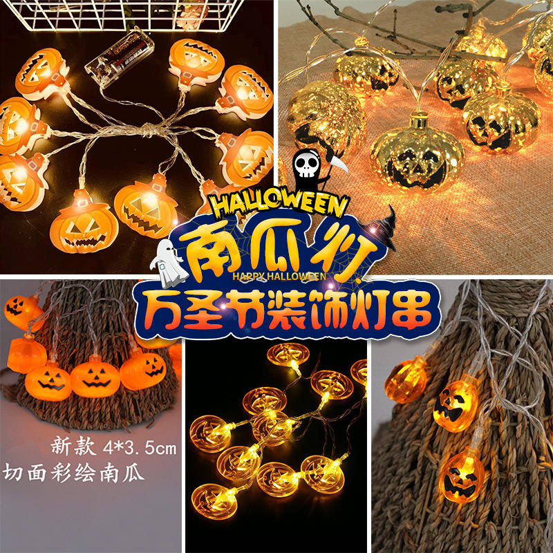 Hot Halloween Style Flashing Light String Painted Pumpkin Battery Light String Easter Decoration Outdoor Decoration Light