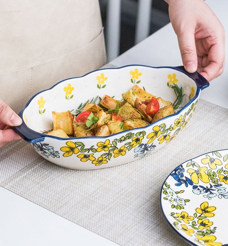 Hot Hand-painted Ceramic Tableware Set Household Baking Pan Mug Bowl Western Food Flat Plate Sets