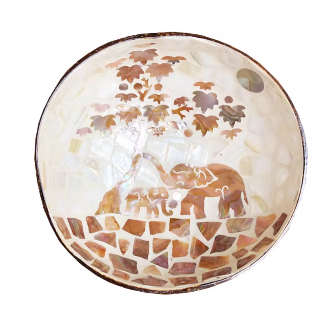 Hot Item Decorative MOP Coconut Bowl with Elephant Inlay Mother of Pearl Handmade Gift for Fruit & Food From Vietnam