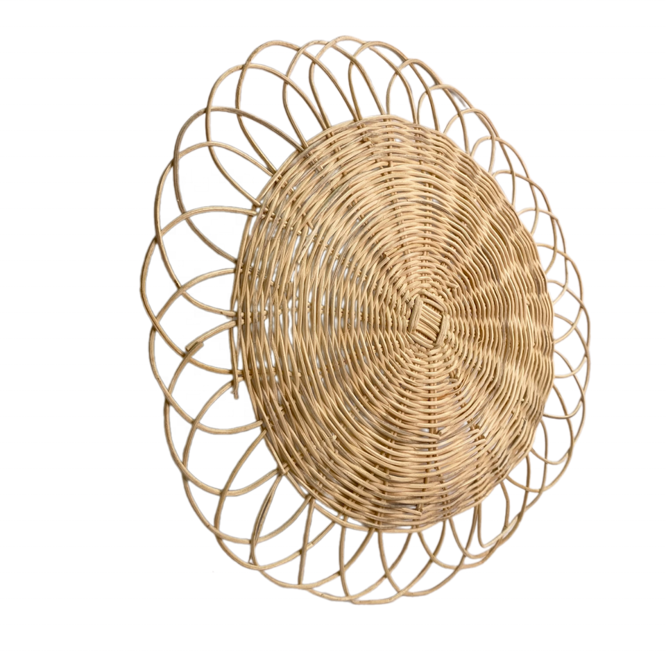 Hot Item Flower Shape Natural Rattan Disc Customized Color Art Deco Design Wholesale for Coaster Storage Hanging Wall Decoration