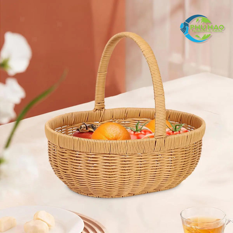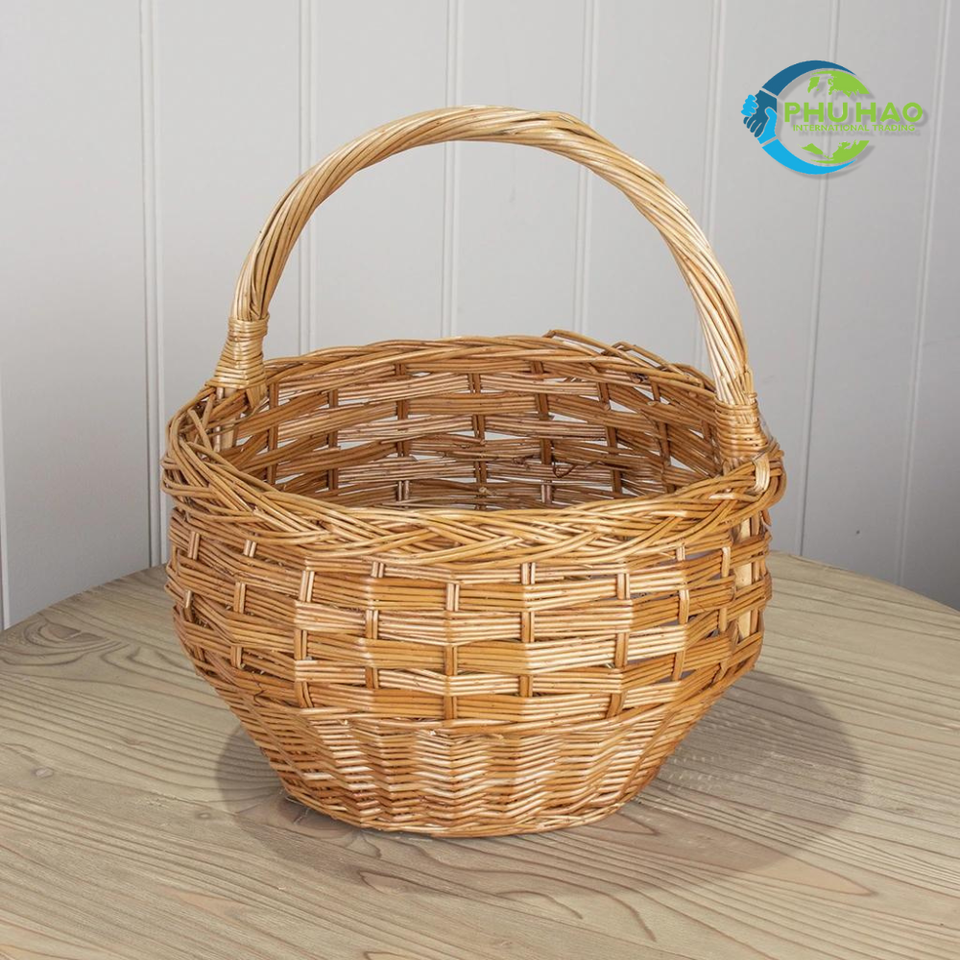 Hot Item!!! Handwoven Rattan Vietnamese VINTAGE COUNTRY BASKET Quality Easter Egg Gift Picnic Basket with Handle