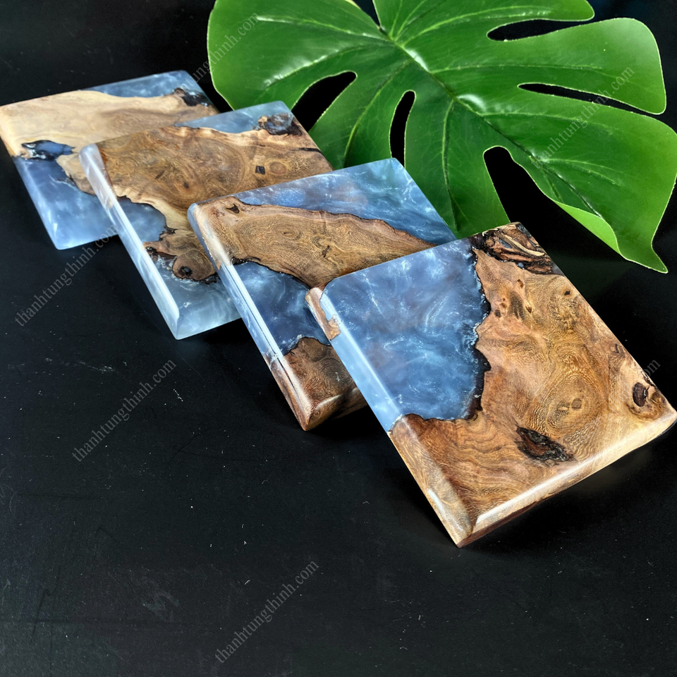Hot Item Modern Custom Coaster Blue Epoxy Resin and Natural Wood Direct Wholesale From Vietnam Manufacturer