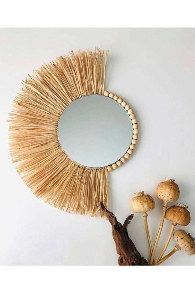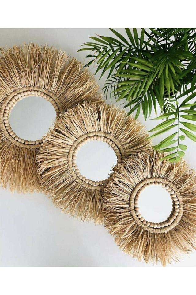 Hot Items Handmade Round Raffia Boho Mirror SetRaffia Wall Decor Raffia Wall Hanging Raffia Eye Mirror