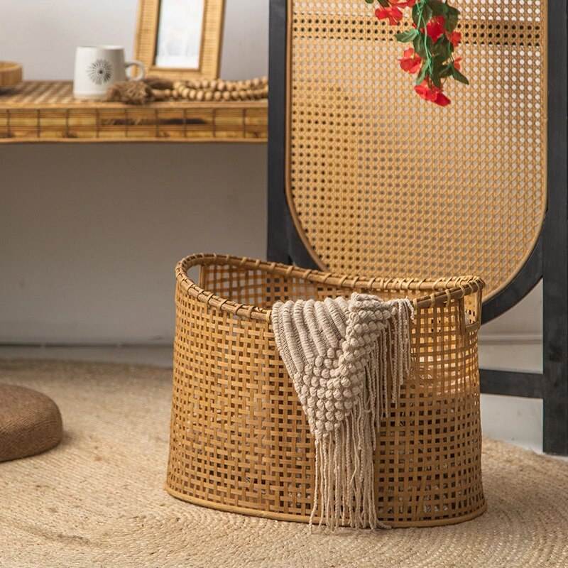 Hot Japanese Rattan Laundry Basket Hollow Storage Multifunctional Dirty Laundry Baskets Environmental Health Wicker Basket