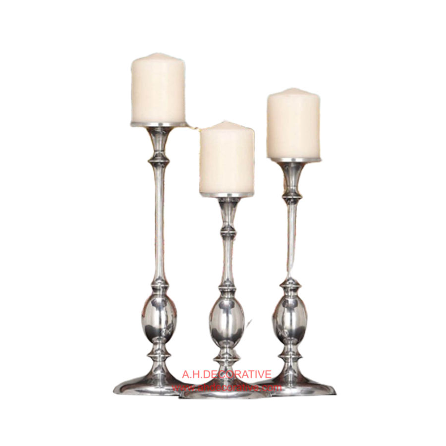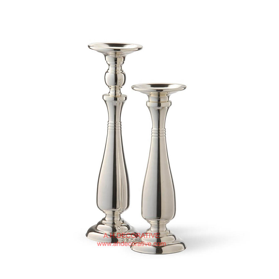 Hot Luxury Shiny Candle Holder Pillar for Wedding Decoration Shiny Silver Plated Luxury Handmade Table Top Candle Stand for Sale