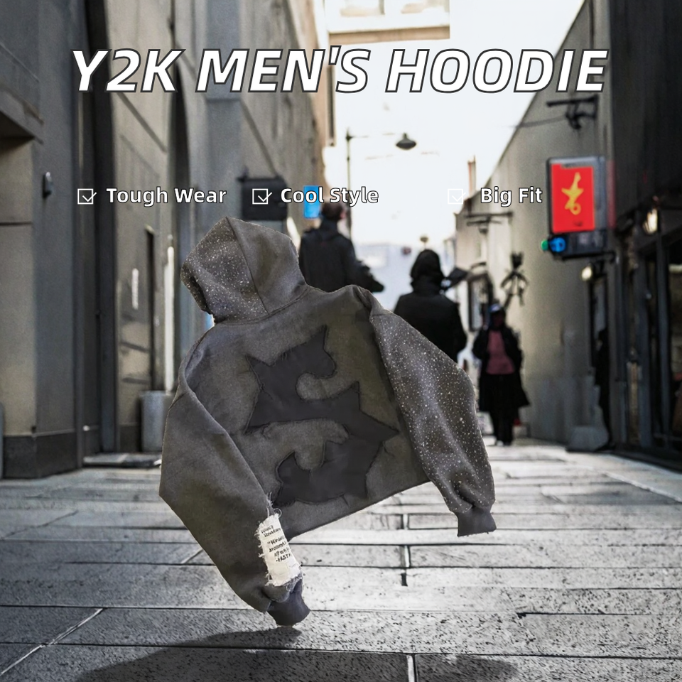 Hot Men's Y2K Streetwear Hoodie Custom Oversize French Terry Sweatshirt Patch Embroidery Printing Blank Plain Acid Washed Short