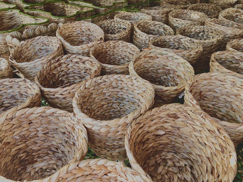 Hot Model Round Water Hyacinth Handmade VN Wicker Basket Folding Kitchen Laundry Storage Basket with Handles for Lunch Packaging