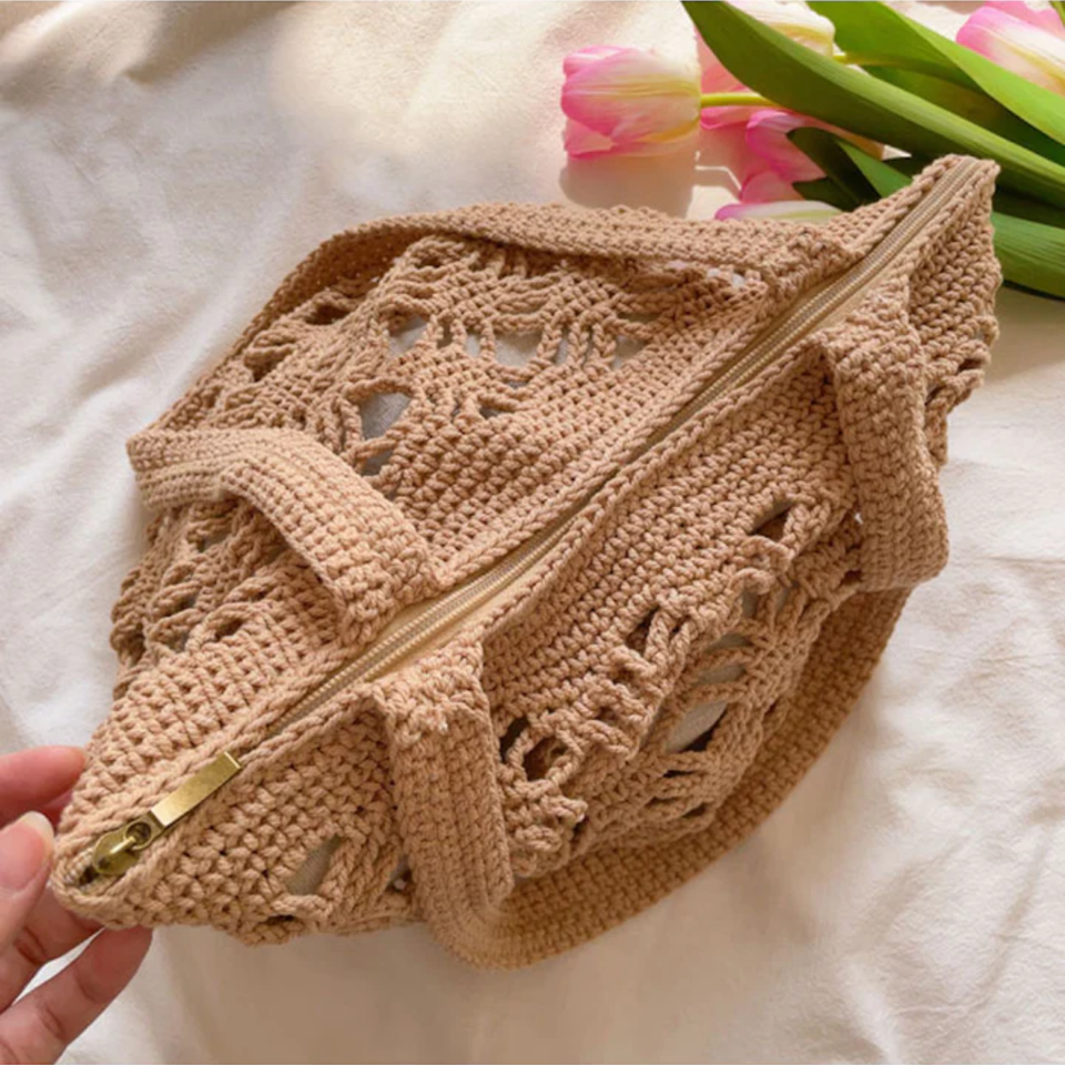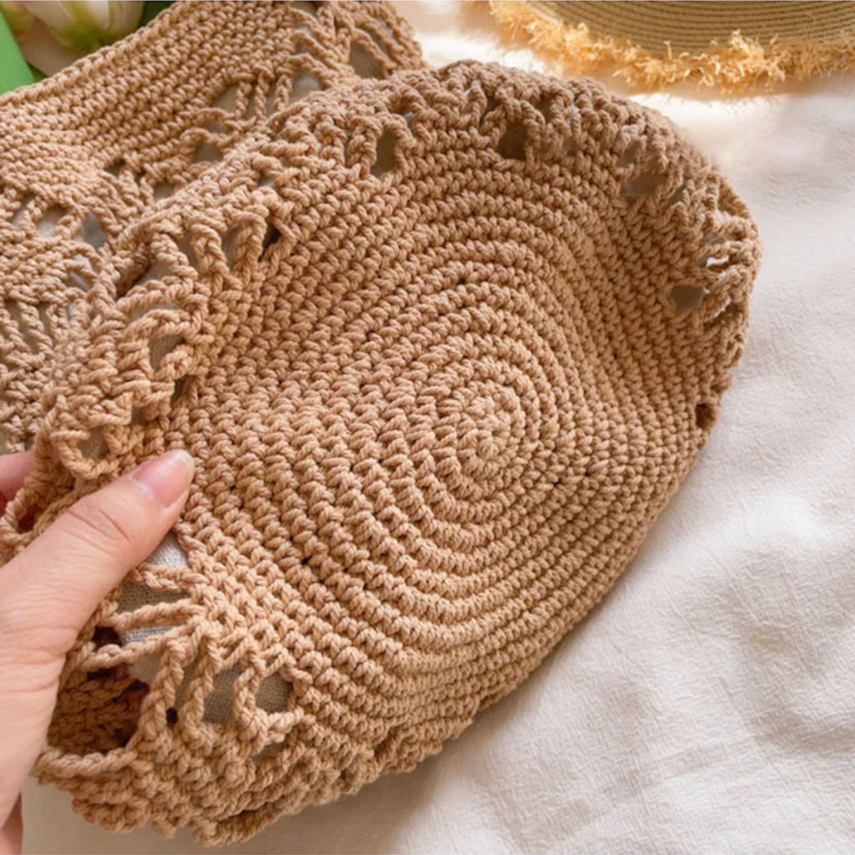 Hot New Items Cotton Rope Hollow Straw Bag, Macrame Tote Bohemian Ultralight Shoulder Bag Net Bag Vintage Handbag