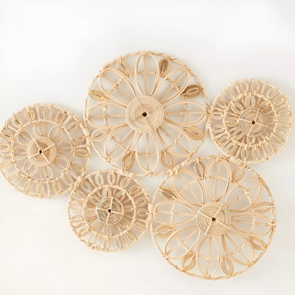 Hot New Trending Gorgeous Set of 5 Rattan Wall Hangings Decorations Art for Home Hotel Restaurant Decor Wholesale From Vietnam