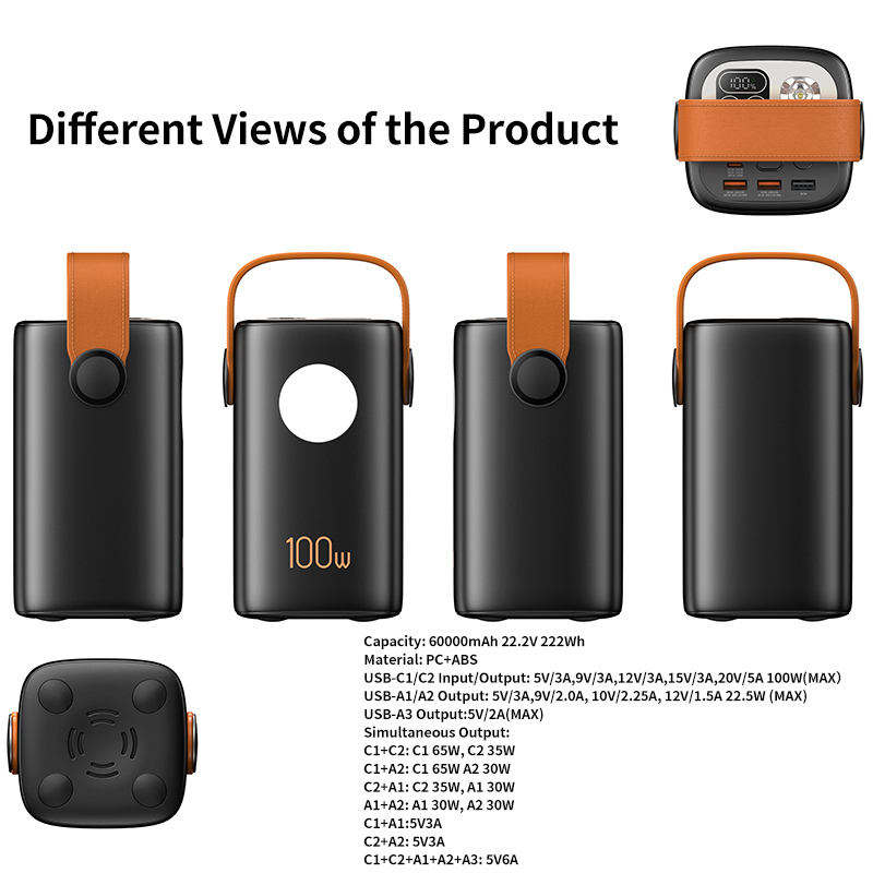 Hot PD 100W Laptop & Computer Power Bank 60000mAh Portable Fast Charging with Dual LED Light and Handle Design