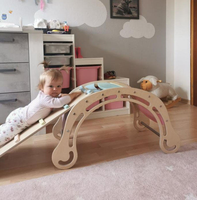 Black Children's Multi-functional Wooden Climbing Frame with Rocking Chair and Slope for Outdoor Hospital Bedroom Use