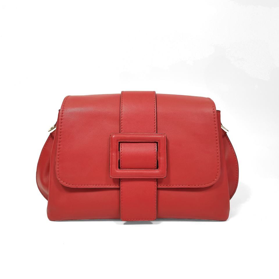 Hot Pick Castello Women's Vintage Red Genuine Leather Crossbody Handbag Gold Foil Logo Adjustable Strap Buckle Low MOQ