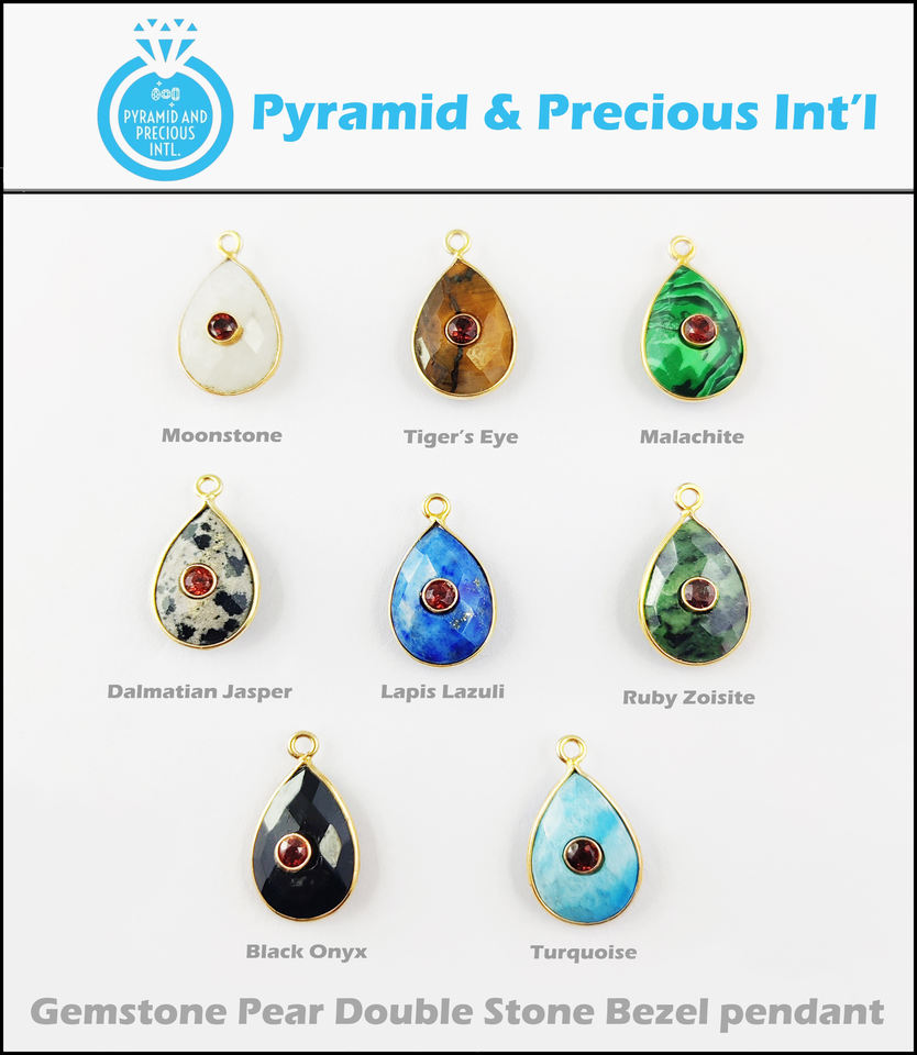 Type:Double Stone 925 Silver Bezel Set Pear Pendant