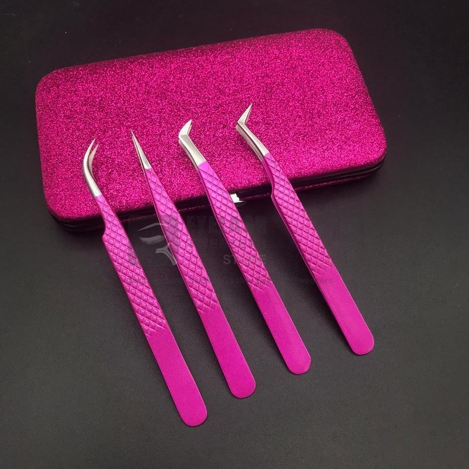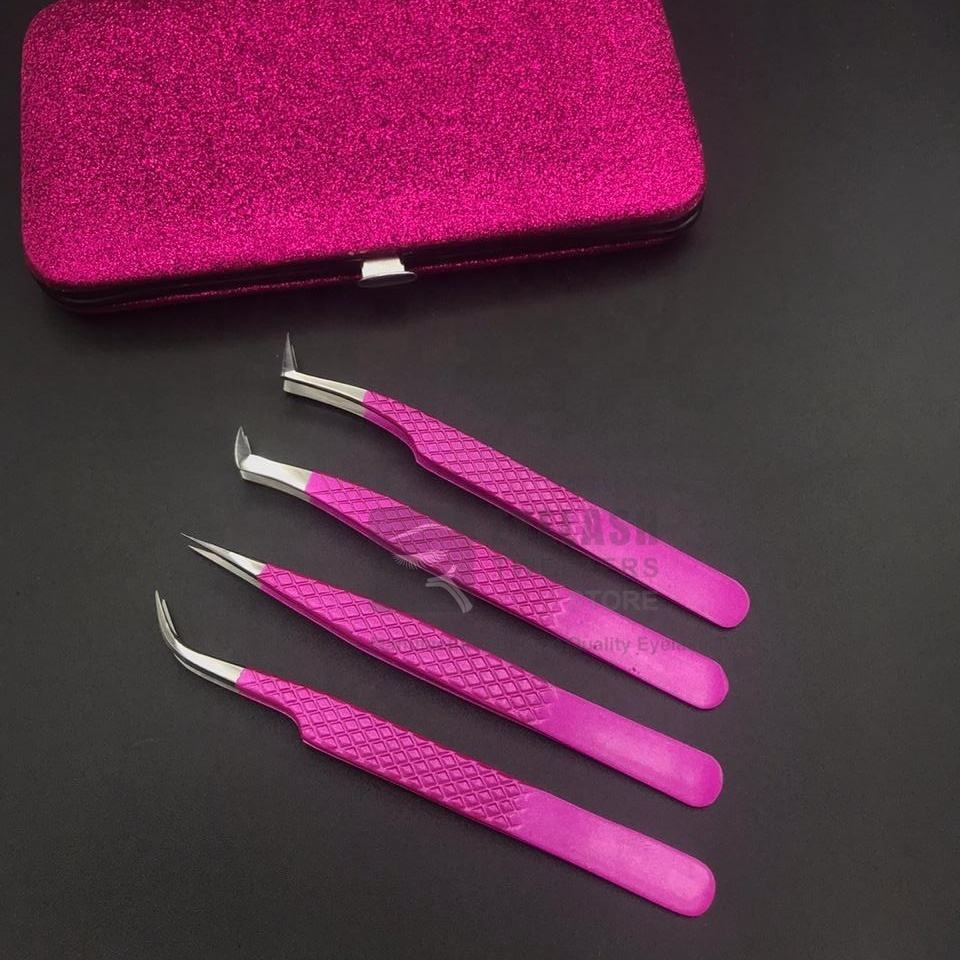 Hot Pink High Quality Stainless Steel Eyelash Tweezers Custom Logo Fiber Tip Volume Extension Sustainable Japanese Design