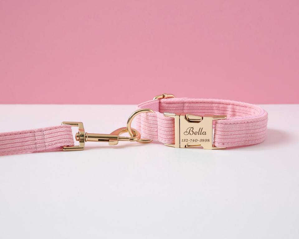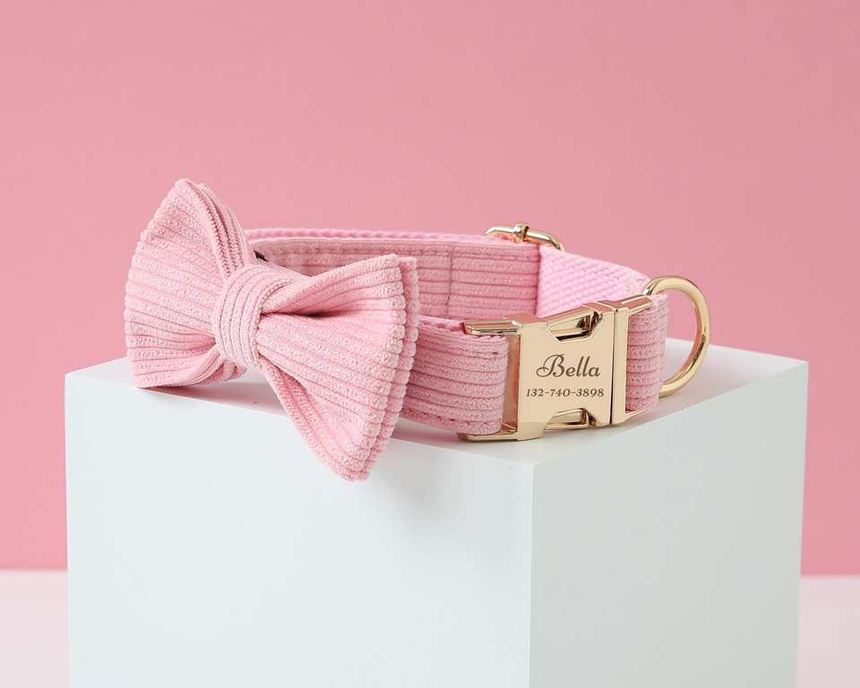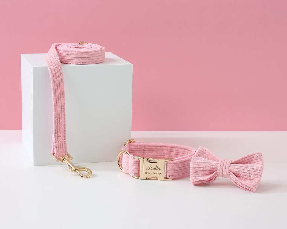 Hot Pink Leash Bow Tie Gift, Personalised With Name,Custom Boy Puppy Collar And Lead For Girl Dog