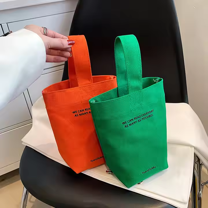 Hot Pink Mini Small Tote Bag Custom Logo Canvas Shopping Bag with Single Handle Bucket Bag