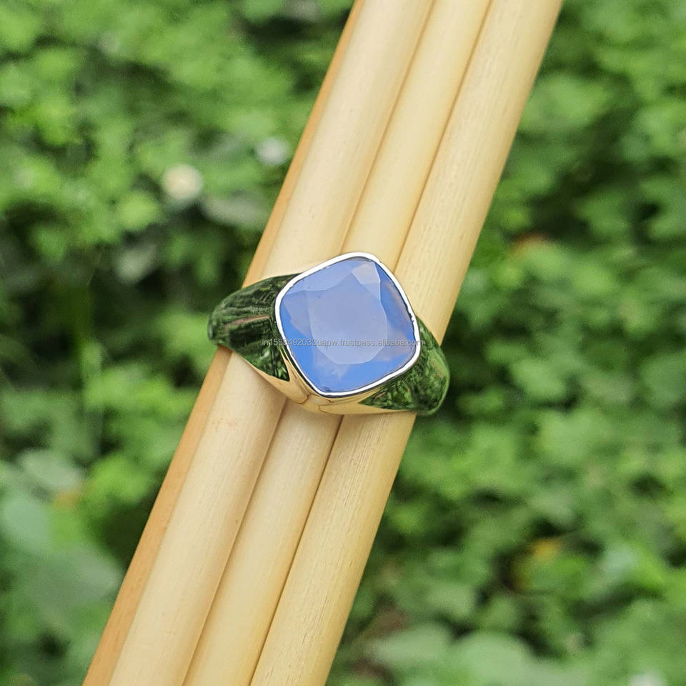 Hot Popular Unisex Wide Band Chunky Square Blue Moissanite 14k Gold Plated Sterling Silver Ring Original Fine Jewelry Wholesale