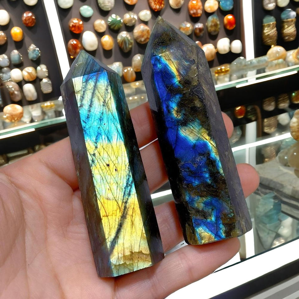 Hot Premium Quality Jumbo Labradorite Wand Natural Side Point Tower Semi-Precious Stone Crafts-Pencil Tower
