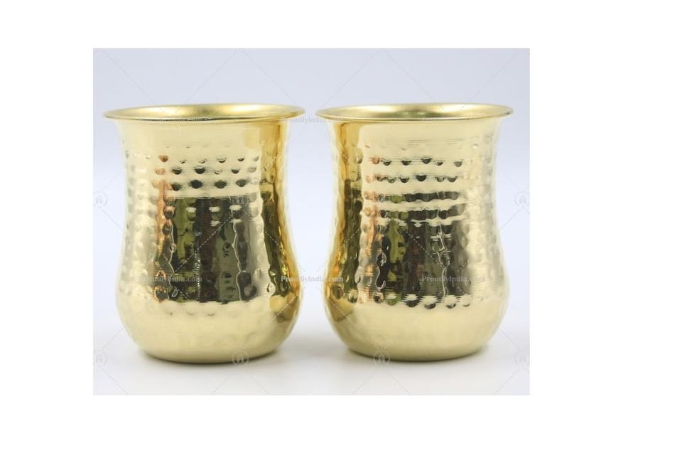 Hot Product Brass Oval Shape Set of 2 Tumbler Metal Drinking Water Glass Tumbler for Drinking Water Home