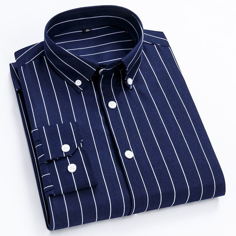 Men's Classic Long-Sleeved Business Shirt 100% Cotton Durable Blended Fabric Single Breasted Casual Style