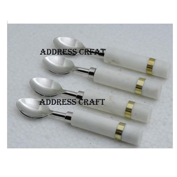 Hot Quality Trending Stainless Steel Marble & Metal Inlay Handle Spoon Sets Table Decoration Use Fruits Spoon Sets Best Selling