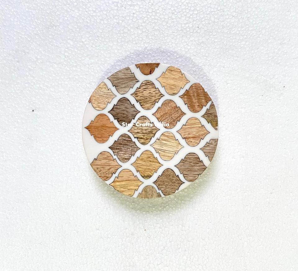 Hot Natural Epoxy Resin & Acacia Wood Coasters round Mats Pads for Home & Hotel Kitchen Accessories