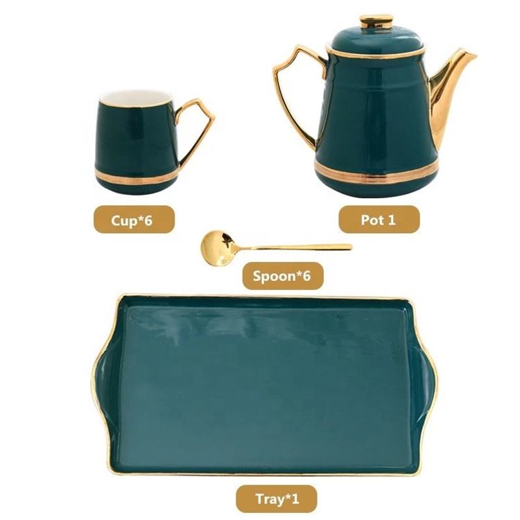 Hot Royal British Gilding Kitchen Accessories Porcelain Marble Green Water Set Coffee Tea Sets